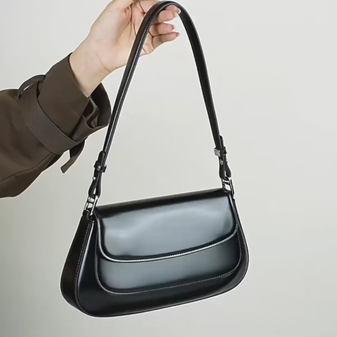 The Vellegra Virelle Shoulder Curve is a compact shoulder bag made from genuine cowhide leather with a soft structure. It features an open top and a curved silhouette with a clean exterior finish.